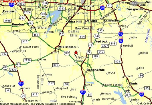 south from I-20. Exit FM 664 (Ovilla Road) and turn right (west).